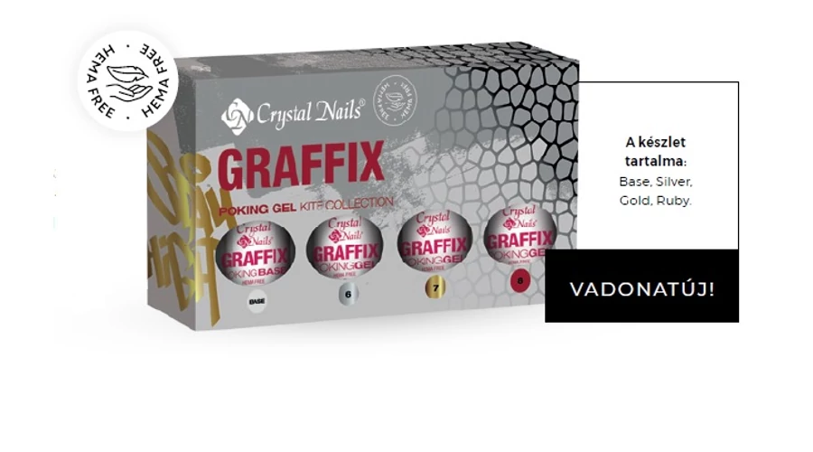 A Graffix zselé a díszítő technikák következő szintje: egyedülálló anyagszerkezetének köszönhetően minden egyes mozdulatból különleges, önálló mintázat születik. A minták hálószerűen, organikusan alakulnak ki, a betűk és szavak pedig graffiti hatású feliratokká formálódnak. Virágok, szirmok, absztrakt motívumok vagy akár állatminták is könnyedén létrehozhatók, így minden egyes köröm teljesen egyedi és megismételhetetlen lesz.